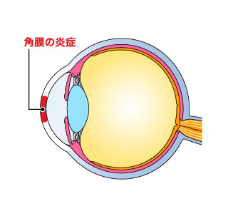 角膜炎は、感染、アレルギー、外傷などが原因で、結膜(黒目)に起こる炎症の総称です。自覚症状としては、目の痛みや異物感、視力低下、涙目などがあります。