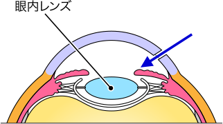 吸引した水晶体の部分に人工の眼内レンズを挿入します。