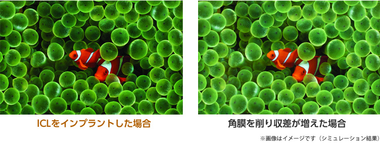角膜を削ることなく、眼内のレンズで近視を矯正するため収差が増えません。さらにクリアで色鮮やかな見え方や、いままでとは違うハイビジョンの奥行きや立体感を実感できます。