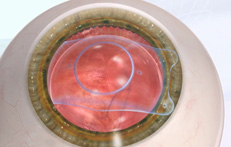 折りたたまれたレンズは、眼内(後房)でゆっくりと自然に広がります。